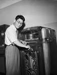 Norio Iwane, Japanese student at Texas Christian University, finds the juke-box an engaging U. S. novelty. says U. S. music "is livelier" than tunes of his native land. Published in Fort Worth Star-Telegram evening edition, June 16, 1950.
