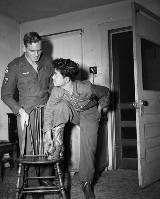 Mike Taylor, 14-year-old Chinese boy, believes in "going western" in his new home in Texas with Sergeant Douglas Taylor, who adopted him in Chinese courts.