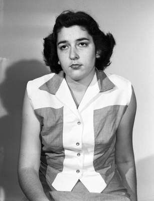 Image shows a bust shot of Corabel Mullican. From a Technical high school she won college scholarship awards in annual achievements program of Sigma Delta Chi's Fort Worth Chapter. Published in the Fort Worth Star-Telegram evening edition, June 13, 1950.