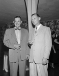 Image shows Major General Roger Ramey,left, chatting with Major General Samuel E. Anderson. Anderson will succeed July 7th to command Ramey's post. They are shown in suits at an open house at Carswell Air Base before leaving for his new assignment as Air Force operations director. Published in the Fort Worth Star-Telegram morning edition, June 15, 1950.