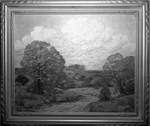 Artist Dwight Holmes calls this painting "Red Oak" because of the flamboyant tree which is in the foreground. It was painted near Mason and is one of 25 oils included in Holmes's how at Lon Hellums Gallery, 304 Main. Published in Fort Worth Star-Telegram, morning edition June 25, 1950.