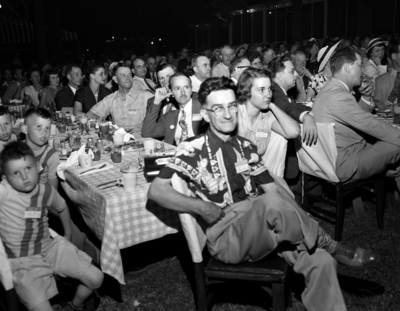 Texas Press Association. All left to right, R. H. Lashinger, Gilmer, Texas. Sarah, Lashinger, Dallas, Texas. J. Kenneth Hogue, Dalhart, Texas. Martin Reese, Dallas, Texas and Mr. and Mrs. Dick Wells, Wellington, Texas.