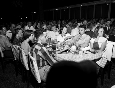 Texas Press Association. All left to right, Right side of table back to front, Frank Knight, Florence Jean Wiedenfeld, Florence, Mary Ellen McDonald, Lafayette, Indiana, Louis Mockel, Lockhart, Diane Wells, Wellingtonm left side of table back to front, Harry Crozier, Austin, Mr. and Mrs. Calvin Clyde, Tyler, Texas.