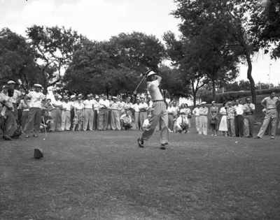 Driving form employed by Ernie Vossler to win city golf championship when he defeated Bob Malone, 5-4. Published in Fort Worth Star-Telegram, evening edition June 19, 1950.