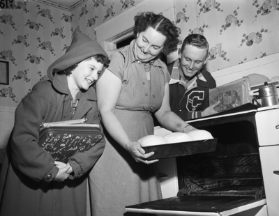 Harold and Marilyn Obenhaus get home from school to find that their mother has some home-made bready ready from the oven.