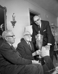 Worthian Members Toast Good Health Twenty-two members of the Worthian Club participated Saturday in their annual reunion and loving cup ritual, a champagne toast to good health. The Worthians, sometimes called the "last man's club" because the cup goes to the last survivor, met on a gay note inasmuch as none had died during the last 12 months. The club, which started its once-a-year gatherings in the early twenties with 33 members, still has 26, and all but seven still reside in Fort Worth. George B. Eagle, who had custody of the loving cup during 1958, brought it to the Worth Hotel for the luncheon meeting and later, together with Drexel G. Foreman, who will get the cup for 1960, delivered it to Pierce Flack of 3800 Arundel, who was unable to attend the reunion because of illness. The meeting was not adjourned, but recessed until Foreman and Eagle placed the cup in Flack's custody. Others in attendance were Dr. Giles W. Day, Arch E. Parnum, John C. (Jack) Davies, Hugh B. Smith, Roy A. Westbrook, S. Scott Teel, Dr. R. G. Baker, Robert T. Welborn, J. F. Lively, Nolty Cox, Dr. A. W. Hiller, Bryan Gregory, Harold Hough and M. E. Ousley, all of Fort Worth. Five from out of town who attended are J. B. Jordan of Abilene, Tom A. Coughlin of Dallas, Joe A. Wilson of Longview, Fred Hyer of Big Spring and Harry A. Taylor of Houston. Absent were Dr. F. L. Snyder and Sam Billingsley, both of Fort Worth; C. K. Fletcher of McAllen and James D'Arcy of Harrison, Michigan.
