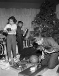 Best Gifts of All Gifts galore clutter the floor around the tree at the W. W. Spears home, 2324 Edwin, Christmas morning. They go virtually unnoticed as the youngsters fondle their favorite giftstwo Dachshund puppies. Clutching the youngest pup, Hans, is Cathy. Examining a gift is Bobby and holding the other pup, Heidi, is George.