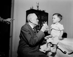 To The Future - John F. Thomas, 100, offers his great-grandson, Billy Dunn, 16 months, a drink of his health-giving milk.