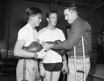 Coach T. W. Tankersley of Granbury, right, gives instructions to E. L. Reed, left, and Ike Ray. Regional Gloves starts on January 16.