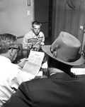 After Rifle Tragedy - Rodger Leigh Eames, 16, tells the story of accidental shooting which cost the life of his 15-year old friend to E. I. McGee, left, assistant county juvenile probation officer, and Sheriff's Investigator E. N. Buie.
