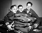 Lettermen - Danny Byrd, Johnny Bowen and Charles Crabtree, left to right, admire letter jackets won by members of the Panther Boys Club football team. They were co-captains this season.