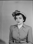 Miss Barbara McMahon, daughter of Mrs. Marjorie McMahon, 2301 Warner Road, visited her sister, Mrs. Jo Ann Elstrand, (Mrs. John G. Elstrand), in Washington en route to Europe. Published in Fort Worth Star-Telegram morning edition, July 16, 1950. A woman smiling wearing a casual suit and a hat with a rose on her head.