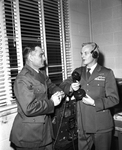 At Reserve Meeting - Brigadier General Felix Vidal of Washington, left, discusses radio equipment with Captain Ralph M. Dean of 7321 Briley Dr. before Air Force Reserve meeting Thursday night. Dean is assigned to the Fort Worth Air Reserve Center.