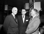Speakers - Three of those who spoke at the baseball rally Wednesday night at Hotel Texas are, left to right, Ed Doherty, president of the American Association; Vernon (Lefty) Gomez, former Yankee pitcher, and Charley Grimm, a Chicago Cubs vice president.