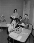Members of the Trinity Chapter, National Secretaries Association, International, are pictured doing voluntary work for the Society of Children with Disabilities in the Easter Seal Sale. Left to right are Mmes. W. D. Lancaster, Wallace Drawert, and Johnny Gentry, and Miss Mary Joan Russell.