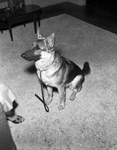 Karma of Royal Rogue, 8 month old German shepherd, owned by Mrs. Louise H. Evans, is one of the entries in the Breeder's Futurity Sweepstakes in Dallas.