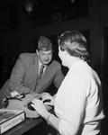 James T. McDonald of Ysleta, commander of the VFW's district 10, registers for VFW Midwinter Roundup with Lucille Dyer.