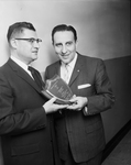 Rabbi Isadore Garsek of Congregation Ahavath Shalom was named the B'nai B'rith Man of the year during a presentation at Ahavath Sholom Center Sunday night. Rabbi Garsek has contributed far and beyond for the community. Garsek was also cited for his service as president of the Kallah of Texas rabbis, as regional president of the Zionist Organization of America, his work with the United Jewish Appeal and with the Jewish Federation of Fort Worth, as chairman of the Jewish Social Service Agency, as board member of the Sunshine Haven and the Jewish Children's Home Service in New Orleans. In the picture, Rabbi Isadore Garsek, left, with Buddy Rosen.