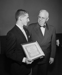 Robert Elwell, left, senior halfback on the Masonic Home football team, gets outstanding boy award from G. W. Montgomery, past grand master of the Grand Lodge of Texas. The presentation was made at the Masonic Home's annual football banquet Wednesday night.