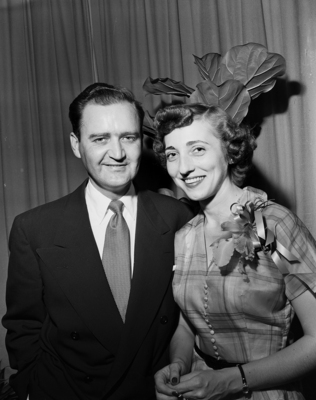 Mr. and Mrs. Thomas Edgar Dinkins, who were married at Broadway Baptist Church Annex, will be at home soon at 1004 University Drive. she is the former Miss Myra Jane Poling, daughter of Mr. and Mrs. Cary Doyt Poling of Louisville, Kentucky. Mrs. Frank Dinkins, 2017 Hurley is the bridegroom's mother. A man and woman dressed up formerly standing together smiling. Published in Fort Worth Star-Telegram evening edition, June 27, 1950.