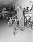 Theo Cromer, owner of the new Cromer's Bike Shop at 2904 Race in Riverside, shows one of the many new bicycles for sale at the store which opened Monday.