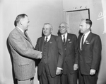 Stock Show. Roy Parks, honored at SS, congratulated by friends. Paul Swaffar, Albert Mitchell and Amon Carter, Jr.