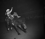 Stock Show. Rodeo. Action. Bert France, bronc riding.