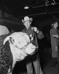 Stock Show. Cattle. Melvin Campbell, with champion hereford bull.