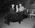 Stock Show. Cattle. Dean Miller, Sarah Moody and Jake Curry with grand champion Shorthorn bull, Louada Aristocrat.
