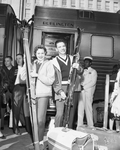 Ski clothes were worn by members of the Fort Worth Ski Club as they left Friday on a special Burlington Lines car for Aspen where the snow sports enthusiasts will enjoy the slopes of that Colorado resort. Mr. and Mrs. W. A. (Chase) Rowan.