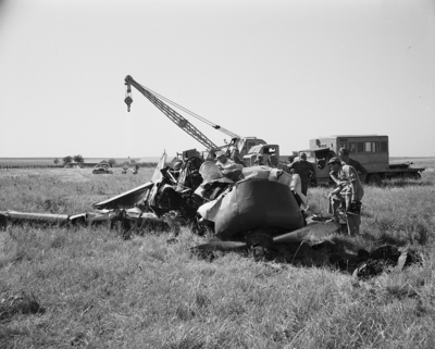 Two Carswell Air Force Base airmen, 1st Lieutenants William E. Pritchett and Joseph A. Elonis, were killed when their training plane erashed in a field near the Texas Christian University (TCU) Airport just off the Old Granbury Road. Published in Fort Worth Star-Telegram, evening edition June 27, 1950.
