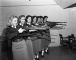 These Arlington Heights ROTC sponsors are leading in the first round of shooting in the Fort Worth High Schools ROTC Student Sponsors Rifle League. They are, left to right, Pat Nunnery, Judy Tkac, Deedie Potter, Mona Lyn McDaniel, Barbara Burt, Bonnie Rodgers, and Marilyn Russey.
