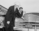 Milton Gruenwald, left, used car manager at Mastin Motors, and Larry Mills a division manager in the Friend of Youth program put on by the YMCA Central Branch, examine a car donated by Mastin's for an auction to be held Feb. 20 at Fort Worth Auto Auction lot to raise money for the YMCA project. About 30 cars have already been donated or promised and around 20 more are expected to be received before auction time.