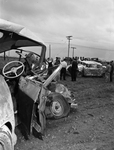 These two mangled autos are shown minutes after four victims were removed from the wreckage Friday afternoon. Charles H. Boyd died in the station wagon at the left. Roy Majors Green died in a hospital after he and two friends were thrown or untangled from the other car. The two fatalities boosted Tarrant County's traffic deaths to 13 in 1959.