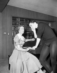 During a rehearsal break for a program to be sponsored by the Opera Guild of Fort Worth at River Crest Country Club, Ronny Johnston, an opera guild scholarship student TCU, chats with Mrs. Julian R. Meeker, chairman of the scholarship fund for the guild.