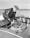 Jim Hall of Houston looks over his 12 cylinder, 4.5 liter Ferrari before start of competition in annual Frostbite race program.