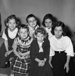 Money for free milk, $4.10 recently was contributed to the Star-Telegram Milk and Ice Fund by these children. They are, left to right, front Valli Marie Thompson, Beverly Sue Moore, and Beverly Jean Dunn; back, Kay Moore, Martha Sue Thompson, and Johanna Motl. They staged a valentine play.