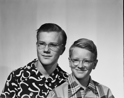 John Sehested, left, and his brother,, Howard, sons of Dr. and Mrs. Herman C. Sehested of 3223 Westcliff Road, West. Left, with their parents for Wellesley, Massachusetts, where they will attend a national meeting of junior astronomers. John is president of the Fort Worth Museum's Junior Astronomer club. Published in Fort Worth Star-Telegram evening edition, June 29, 1950.