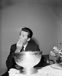 James Garner, better known as "Maverick" in the television series, flashes an oversized key given him Tuesday by Mayor McCann as the actor visited here. Miss Margie Ward, mail clerk at the Hotel Texas, saw that Garner got plenty of official attention during his stay.