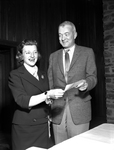 Mrs. Gordon Harriman, retiring president of the Jewel Charity Ball committee presented a check for $36, 000 to J. Lee. Johnson III, president of the board of the Fort Worth Children's Hospital, beneficiary of the Jewel Charity Ball given Jan. 24. at Ridglea Country club.