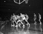 Grabbing Gary- Rice's Gary Griffin (34) grabs for loose ball during game with Frogs. Texas Christian University players in picture behind Griffin, Ronny Stevenson (44) and Derrill Nippert (41).