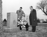 Richard L. Scheidker of New York, senior vice president of the American Association of Advertising Agencies, made a visit to a Fort Worth grave Thursday. He placed a wreath at Greenwood Cemetery on the stone honoring Frank T. Crittenden, first president of the Advertising Club of Fort Worth and originator of the "Truth in Advertising" slogan adopted nationally. In the picture, Julian Read, Richard L. Scheidker, and Ralph Ray.