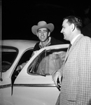 Jalopies ranging in vintage from the mid thirties to the early fifties chugged in and out of Fort Worth's Auction arena Friday night to add $ 2,432.70 to the Friend of Youth membership pot for Central Branch of the YMCA. Thirty three members of the New Car Dealers Association and the Independent Car Dealers Association contributed used cars and extra cash to the benefit auction. In the picture, Jerry C. Brunson and William Clarke.
