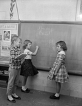 Blackboard exercises at Forest Hill School find Carolyn Kerr reading and Elaine Cousins (center) and Kay Shaw writing, They're second graders.