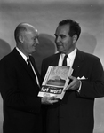 The names of 205,640 "guys and dolls' are listed in the new Fort Worth telephone directory, which will be distributed next week. Wray Brown, district manager for Southwestern Bell Telephone Company, presented a framed copy of the cover to James H. Snowden, president of Casa Manana Musicals Inc., during the City Council meeting Friday. In the picture Brown and Melvin Dacus, producer of Casa Manana.