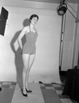 Carolyn Cole, candidate for Miss Insurance Week. The young woman can be seen posing. She is wearing a swimsuit.