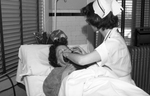 Mrs. Tony E. Snow receives oxygen from a nurse at St. Joseph's Hospital a short time after she was rescued from her burning home by a passerby.