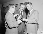 Watt Kemble Junior, John Justin Junior, and Gene Cagle, left to right, candidates in the April 7 City Council election, talk strategy over a cup of coffee. All are indorsed by the Greater Fort Worth Committee.