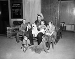 Mrs. Jo Ann Argabright, who suddenly found herself a "kidnapper" on a grand scale was arrested Thursday night at the South Side home of a friend. With here were the seven children, her own, she is accused of abducting. The youngsters range in age from 4 months to 11 years. The 27 year old blond first became fugitive Tuesday when she tried to dodge posting $8,000 in bonds. In the picture Perry Purdue Sheriff Deputy, and the seven children of Mrs. Argabright.