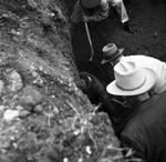 Charles Ray Roberts, 38 was buried alive in a sewer ditch cave in at 9:10 am Thursday. He was shoveled out in good condition 20 minutes later. In the picture, Roberts nearly free, halfway out of a trap.